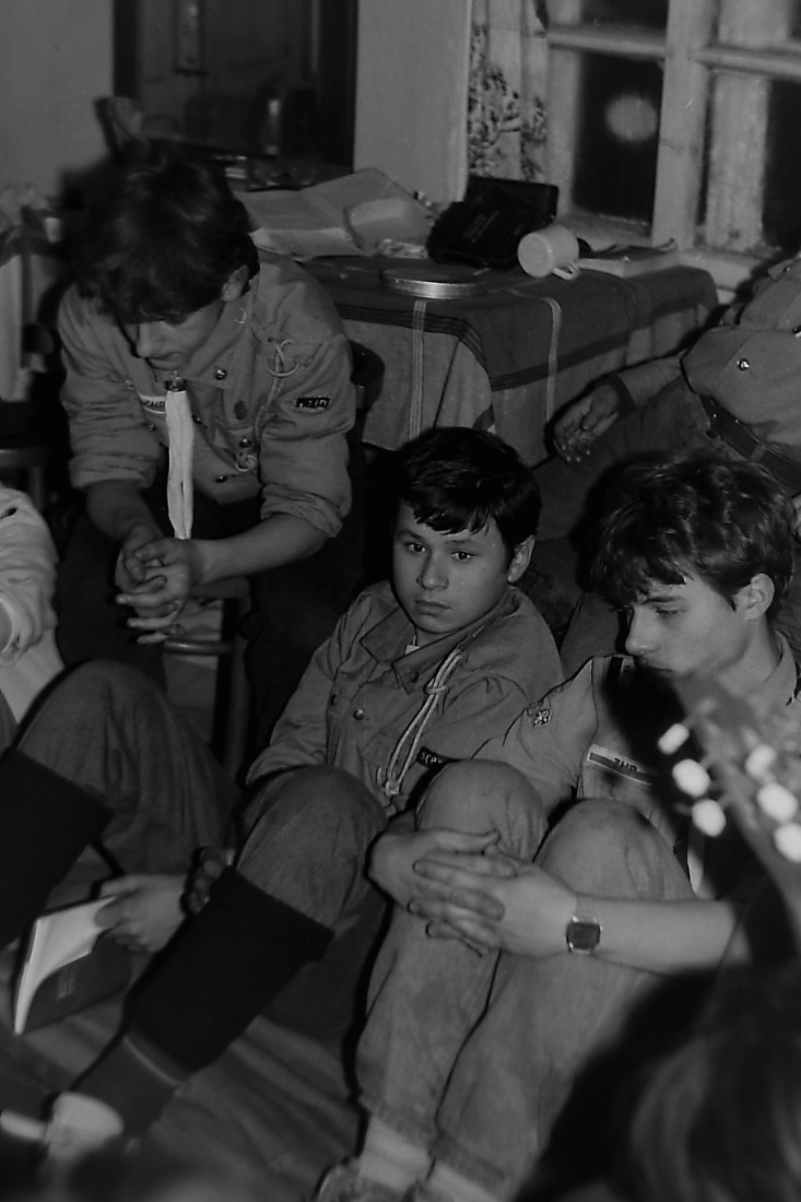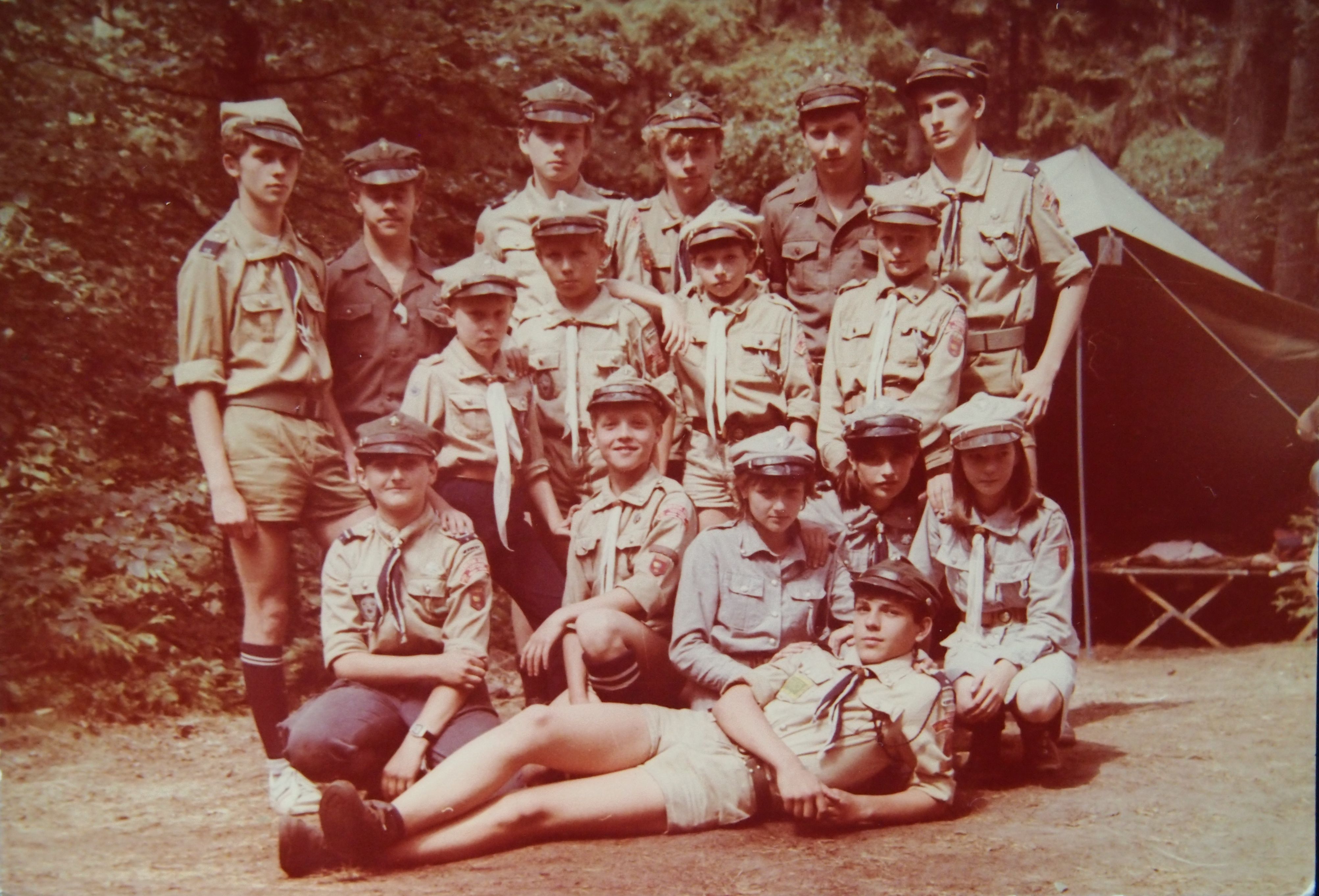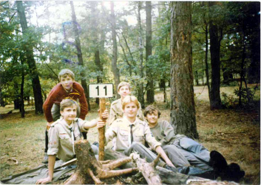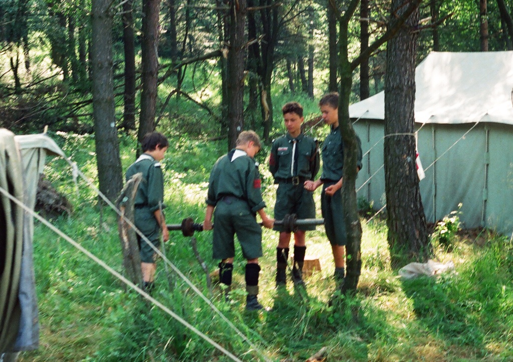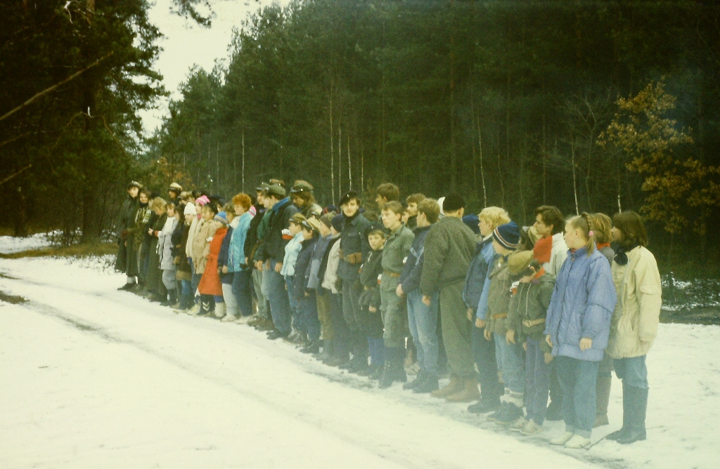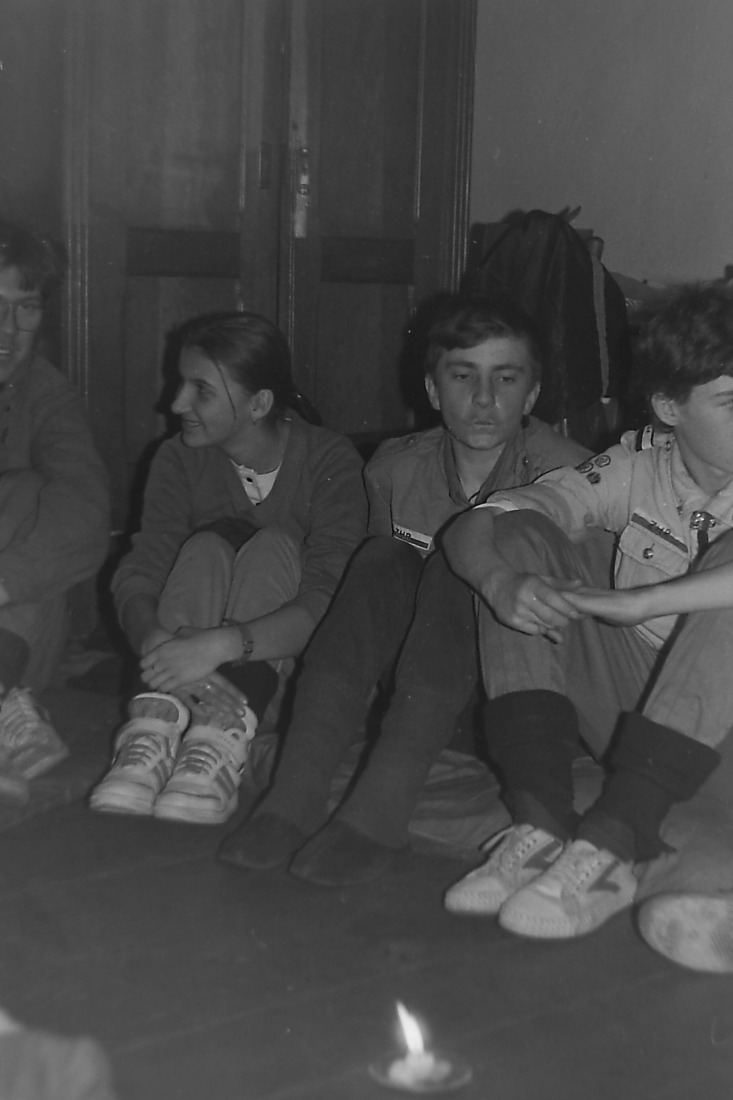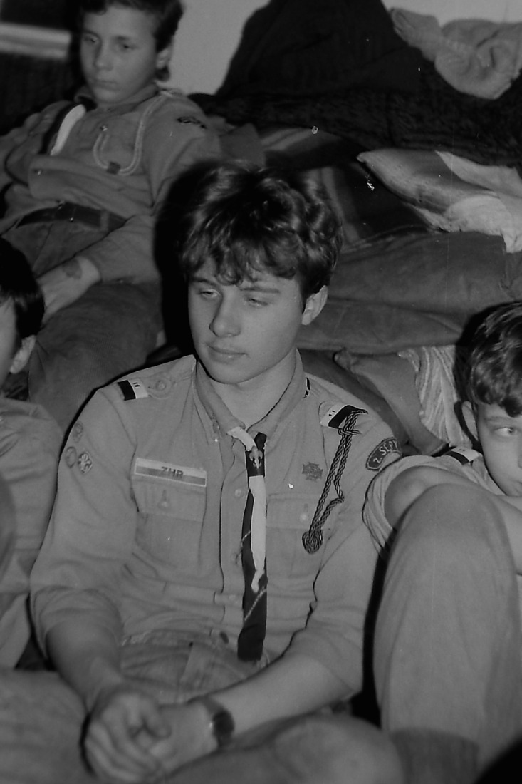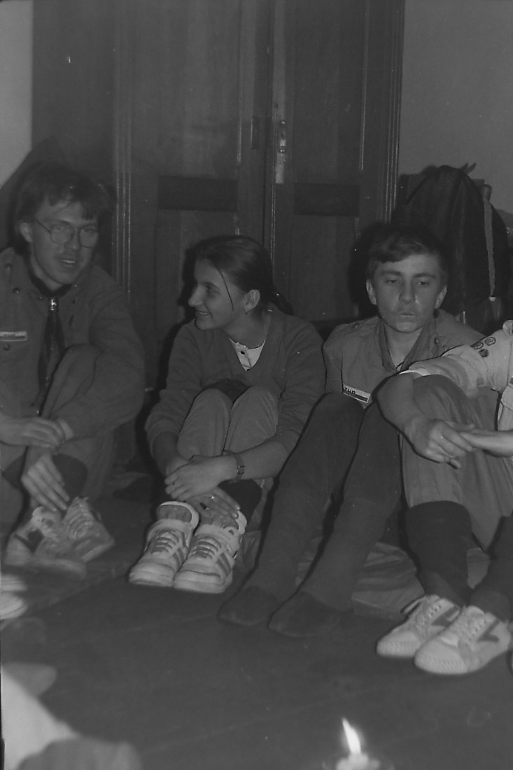 Kolejne zdjęcie z "fotograficznej" zbiórki zastępu Sokoły z 11 SDH - Spalony Wigwam, 1994