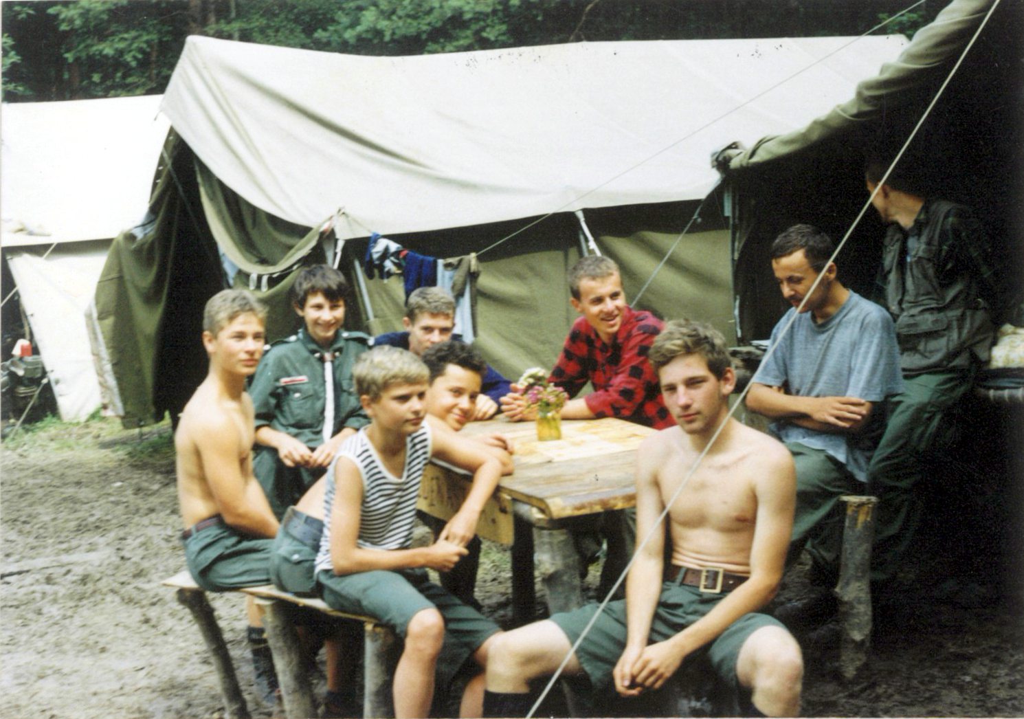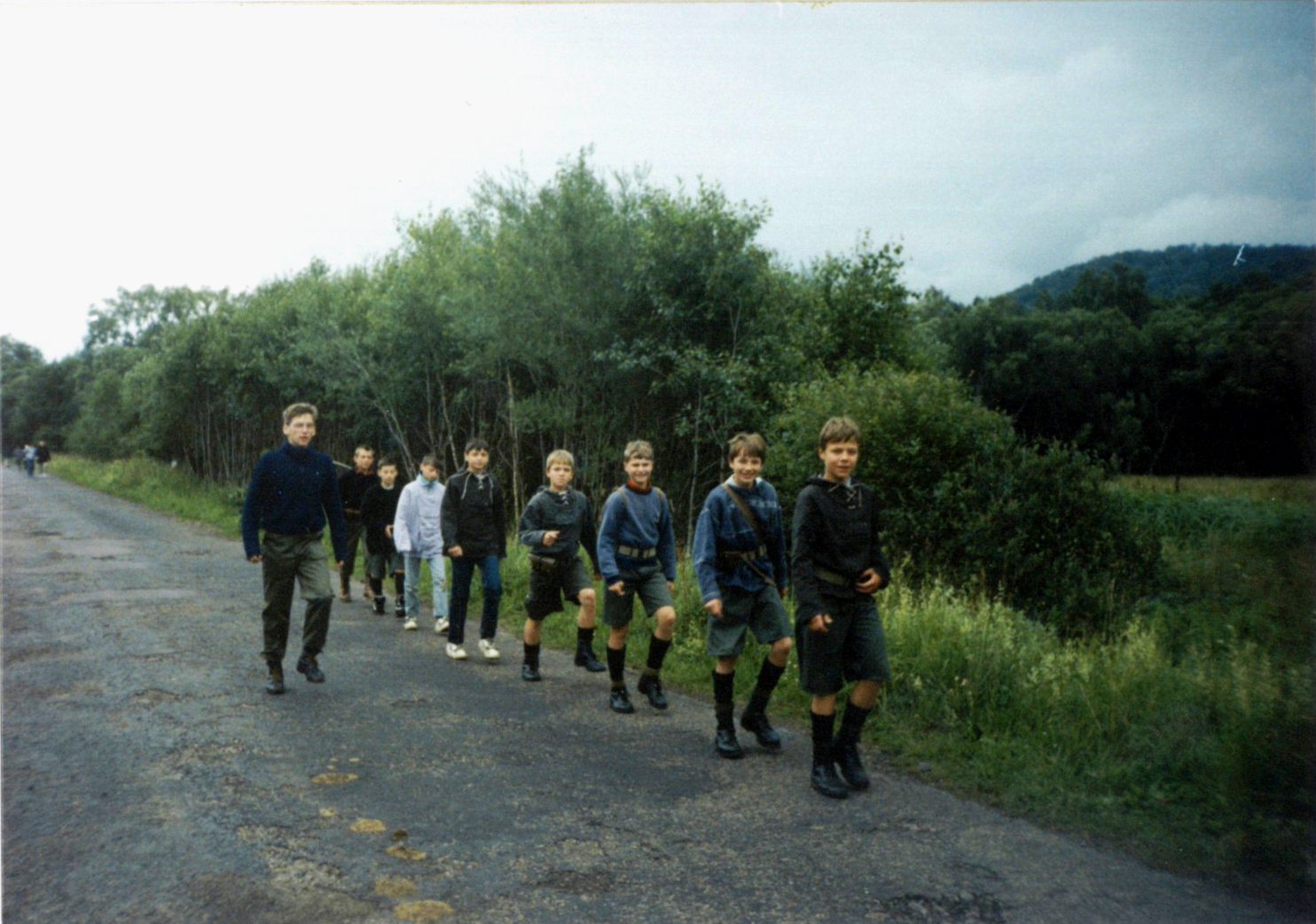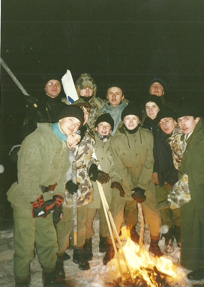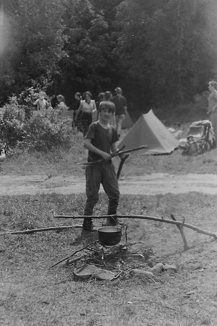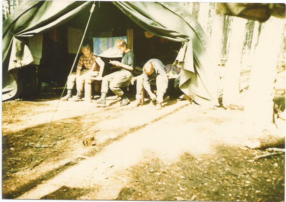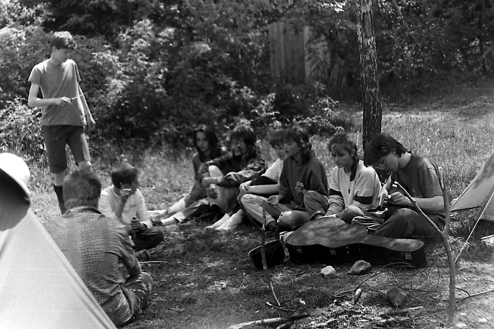 Kolejne zdjęcie z "fotograficznej" zbiórki zastępu Sokoły z 11 SDH - Spalony Wigwam, 1994